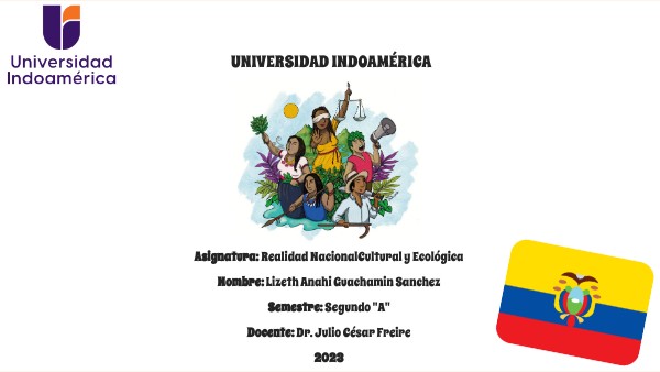 Asignatura: Realidad NacionalCultural y Ecológica Nombre: Lizeth Anahi Guachamin Sanchez Semestre: Segundo "A" Docente: Dr. Julio César Freire 2023