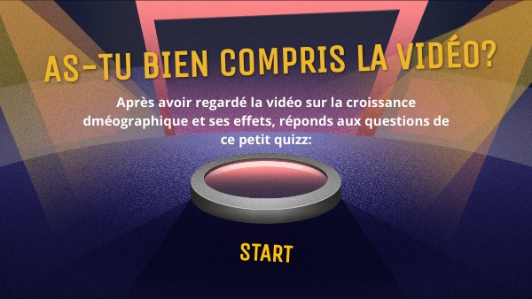 Après avoir regardé la vidéo sur la croissance dméographique et ses effets, réponds aux questions de ce petit quizz: