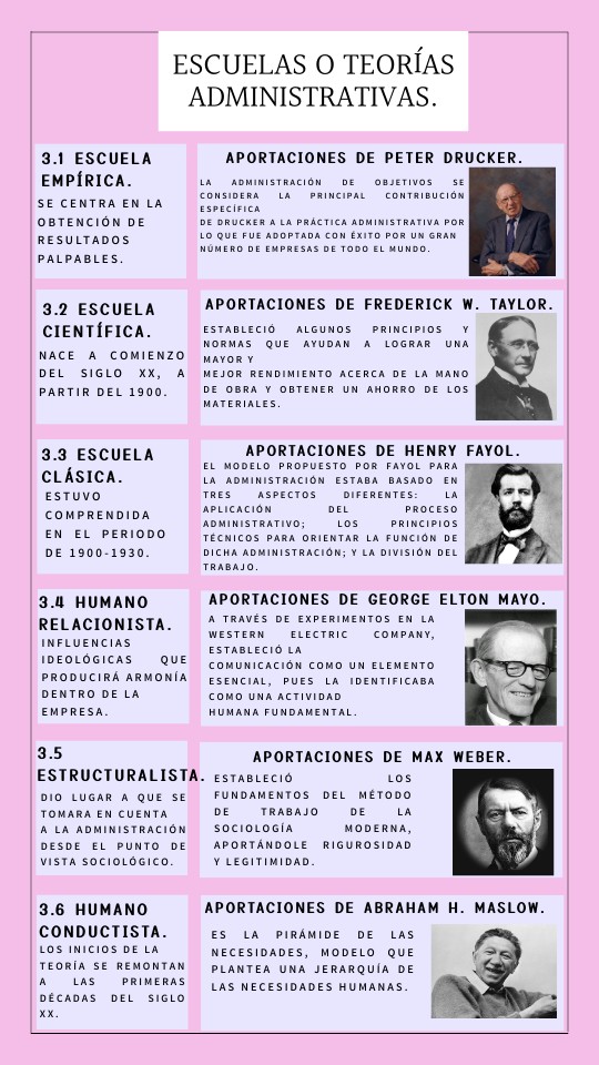 el modelo propuesto por Fayol para la administración estaba basado en tres aspectos diferentes: la aplicación del proceso administrativo; los principios técnicos para orientar la función de dicha administración; y la división del trabajo.