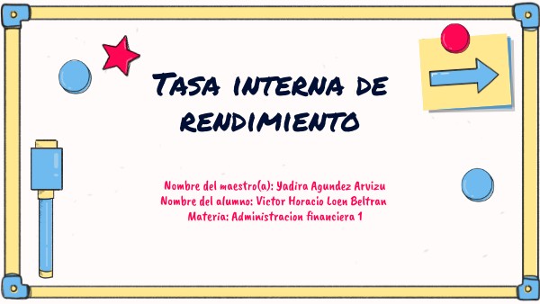 BIBLIOGRAFIAS Arias, AS (2014, 15 de julio). Tasa interna de retorno (TIR) . Economía. https://economipedia.com/definiciones/tasa-interna-de-retorno-tir.html Cruzito. (2020, 14 de septiembre). Método de tasa interna de rendimiento: definición y cálculo . Estudiando. https://estudiando.com/metodo-de-tasa-interna-de-rendimiento-definicion-y-calculo/ Corvo, HS (2023, 26 de junio). Tasa interna de retorno . Salvavidas. https://www.lifeder.com/tasa-interna-de-retorno/
