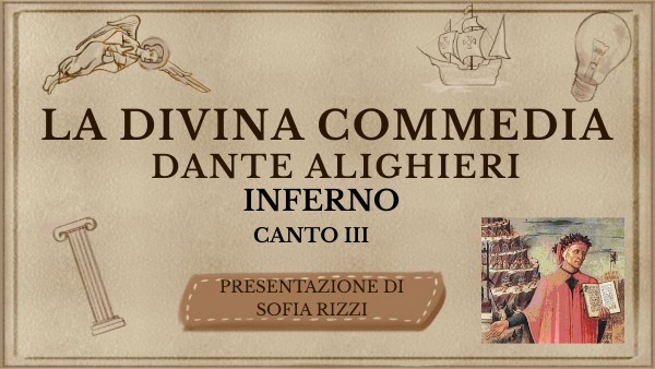 "Attraverso me si entra nella citta della sofferenza,attreverso me si va dove il dolore è eterno, attraverso me si va tra le anime dei dannati. Il mio Creatore (Dio) fu mosso dalla volontà di giustizia: fui creato dal divino potere (Dio), dalla somma sapienza (Figlio) e dal primo amore (Spirito Santo). Prima di me non fu creata nessuna cosa, se non eterna, e io durerò per sempre. Abbandonte ogni speranza voi che entrate."