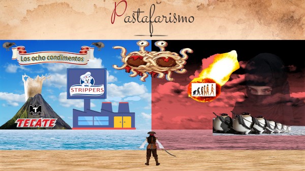 Revelacion del Apendice Tallarinesco, y los que tuvieron suerte de verlo, sabian que la vida tenia que ser en el mar. Nace la discriminacion de los cristianos. Nacio Halloween. Pastafaris vs Noé