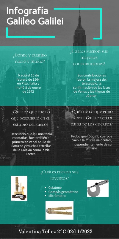 Sus contribuciones fueron la mejora del telescopio, la confirmación de las fases de Venus y las 4 lunas de Júpiter