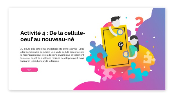 Au cours des différents challenges de cette activité vous allez comprendre comment une seule cellule créée lors de la fécondation peut-être à l'origine d'un foetus entièrement formé au bouot de quelques mois de développement dans l'appareil reproducteur de la femme.