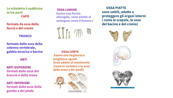MANDIBOLA CRANIO CLAVICOLA STERNO COSTOLE COLONNA VERTEBRALE BACINO OMERO ULNA RADIO FEMORE ROTULA TIBIA PERONE