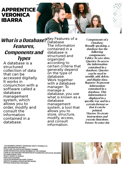 A database is a structured collection of data that can be accessed digitally. It works in conjunction with a software called a database management system, which allows you to order, modify and consult the information contained in a database.