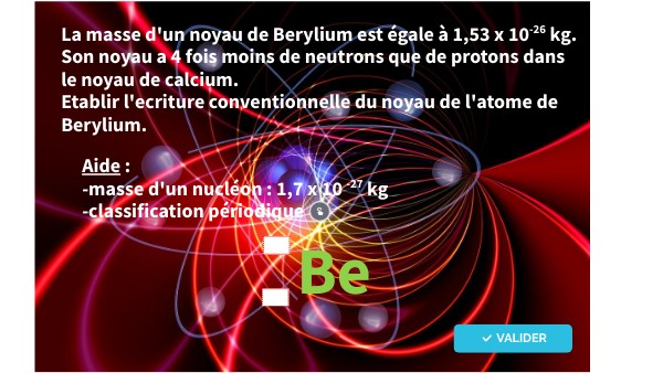 Aide :-masse d'un nucléon : 1,7 x 10 -27 kg -classification périodique