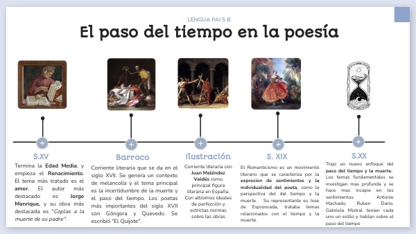 El Romanticismo es un movimiento literario que se caracteriza por la expresion de sentimientos y la individualidad del poeta, como la perspectiva del del tiempo y la muerte. Su representante es Jose de Espronceda, trataba temas relacionados con el tiempo y la muerte.