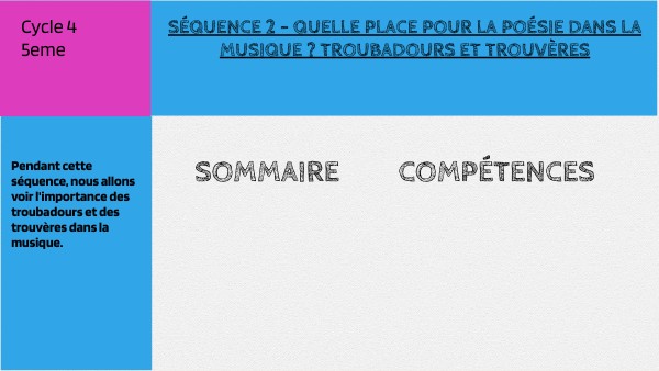 Pendant cette séquence, nous allons voir l'importance des troubadours et des trouvères dans la musique.