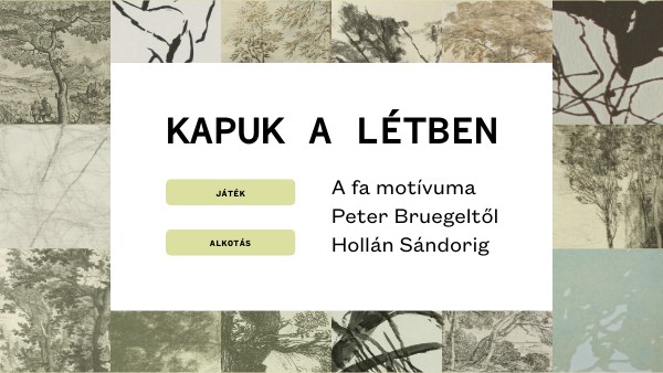 Kedves Látogatónk! Ez a digitális játék a Grafikai Gyűjtemény gyűjteménytörténeti érdekességeire, a különböző technikákra, valamint a kiállításon szereplő alkotások közötti párhuzamokra világít rá. Az állandó kiállítást kísérő időszaki tárlaton a fák legfinomabb belső erőinek érzékeny megfigyelője, Hollán Sándor (1933–) munkáit ismerhetjük meg elődei, az európai grafikatörténet legkiemelkedőbb mestereinek tájképei körében.