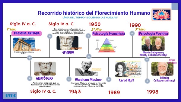 - Valencia, A., Medécigo, M., y Rueda, L. (2023). Lección 1. Recorrido histórico del florecimiento humano. Módulo de Especialización: Introducción al florecimiento humano. UVEG. Universidad Virtual del Estado de Guanajuato. Recuperado el 26 de octubre de 2023, de https://avalicmod19c.uveg.edu.mx/mod/hvp/view.php?id=14543