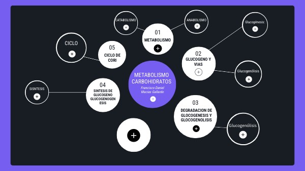 Anabolismo: Proceso metabólico que implica la construcción de moléculas complejas a partir de moléculas más simples, utilizando energía y sustratos. Ejemplos incluyen la síntesis de proteínas, la formación de glucógeno y la construcción de ácidos nucleicos. Es fundamental para el crecimiento, la reparación de tejidos y el almacenamiento de energía.
