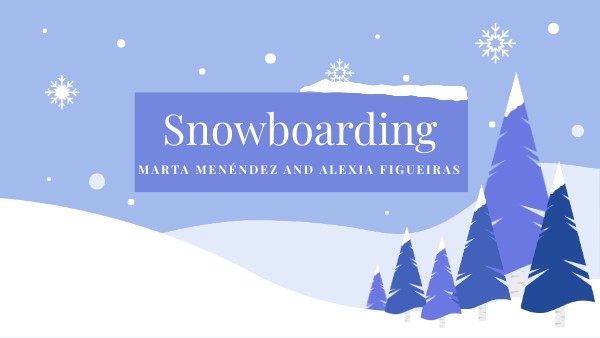 Ist is a sport that consists on travelling down snowy slopes using a snowboard. It is practice on snow stations which are usually located on the mountains.It is an individual sport and it has different levels of slopes: The easiest is green, and the others get progressively complicated, are classified as blue, red and black.