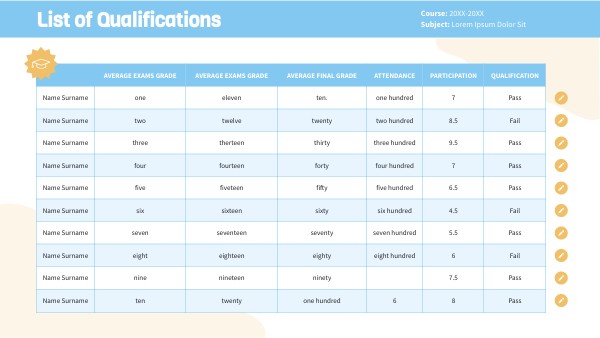 List of Qualifications