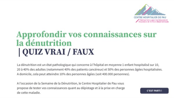 Approfondir vos connaissances sur la dénutrition | QUIZ VRAI / FAUX