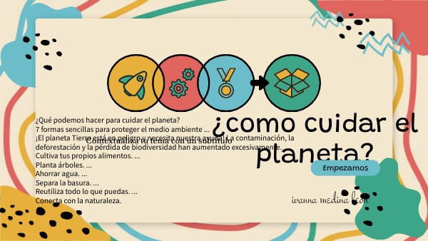 ¿Qué mensajes voy a transmitir en mi familia para cuidar el planeta Tierra? ¿Cómo proteger y cuidar la Tierra? Utiliza las 3R: reduce, reúsa y recicla. Segrega tus residuos de manera correcta. Ahorra agua, energía y papel. Usa bolsa de tela. Planta un árbol. Únete a un voluntariado ambiental. Movilízate en bici. Sé agente de cambio, y concientiza a tus amigos y familia.