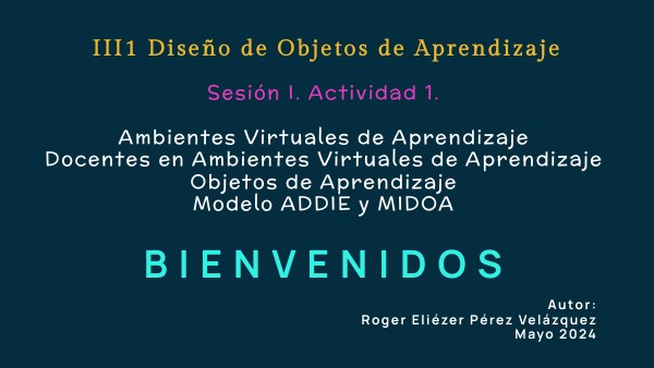 Sesión I. Actividad 1. Ambientes Virtuales de Aprendizaje Docentes en Ambientes Virtuales de Aprendizaje Objetos de Aprendizaje Modelo ADDIE y MIDOA