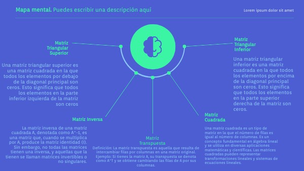 Definición: La matriz transpuesta es aquella que resulta de intercambiar filas por columnas en una matriz original. Ejemplo: Si tienes la matriz A, su transpuesta se denota como A^T y se obtiene cambiando las filas de A por sus columnas.