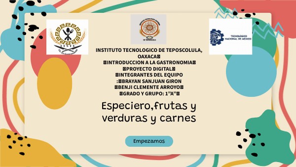 INSTITUTO TECNOLOGICO DE TEPOSCOLULA, OAXACA INTRODUCCION A LA GASTRONOMIA PROYECTO DIGITAL INTEGRANTES DEL EQUIPO :BRAYAN SANJUAN GIRON BENJI CLEMENTE ARROYO GRADO Y GRUPO: 1”A”