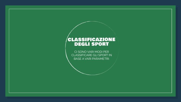 CI SONO VARI MODI PER CLASSIFICARE GLI SPORT IN BASE A VARI PARAMETRI: