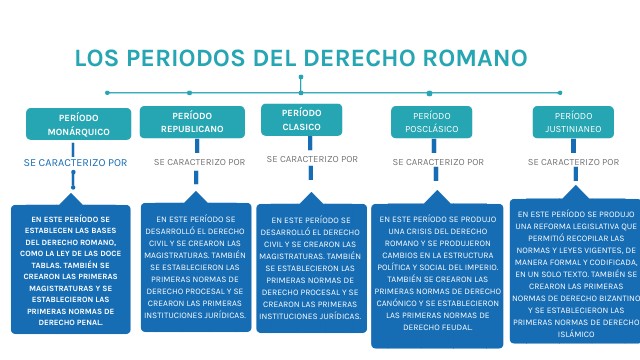 En este período se establecen las bases del derecho romano, como la Ley de las Doce Tablas. También se crearon las primeras magistraturas y se establecieron las primeras normas de derecho penal.