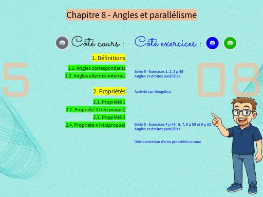 Série 5 - Exercices 4 p 48 ; 6, 7, 8 p 50 et 9 p 52 Angles et droites parallèles