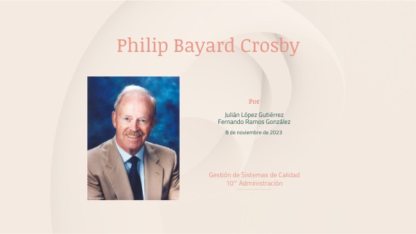 Philip Crosby nació en Wheeling, Virginia el 18 de junio de 1926. Entre su participación en la Segunda Guerra Mundial y Corea, Philip Crosby comenzó su trabajo como profesional de la calidad en 1952 en una escuela médica. Su carrera comenzó en una planta de fabricación en línea donde decidió que su meta sería enseñar administración en la cual previniendo problema sería más provechoso que ser bueno en solucionarlos. Trabajó para Crosley de 1952 a 1955; Martin-Marietta de 1957 a 1965; y para ITT de 1965 a 1979. Como encargado de calidad para Martin-Marietta, creó el concepto de cero defectos. Durante sus 14 años como vicepresidente corporativo para el ITT, trabajó con muchas compañías industriales y de servicio alrededor del mundo, implanto su filosofía pragmática, y encontró que era aplicable en el mundo entero. En 1979 fundó Philip Crosby Associates, Inc. (PCA), y durante los diez años siguientes la convirtió en una organización con 300 empleados alrededor del mundo y con $80 millones de dólares en ganancias. PCA enseñó a la gerencia cómo establecer una cultura preventiva para lograr realizar las cosas bien y a la primera. GM, Chrysler, Motorola, Xerox, muchos hospitales, y cientos de corporaciones alrededor del mundo vinieron a PCA para entender la Administración de la calidad.