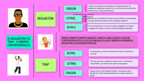 Ambos generos son muy buenos e unicos, han llegado a causar controversia por su uso de lenguaje vulgar. Debemos aprender a disgrutar la diversidad musical