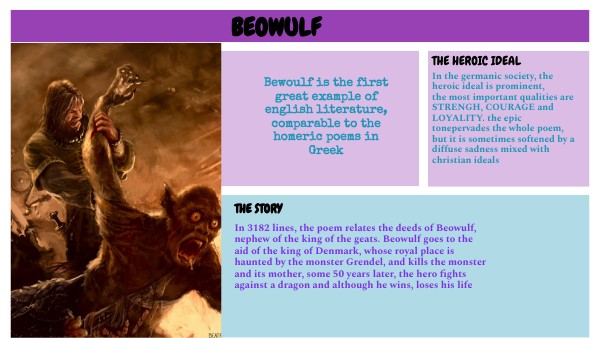 Bewoulf is the first great example of english literature, comparable to the homeric poems in Greek
