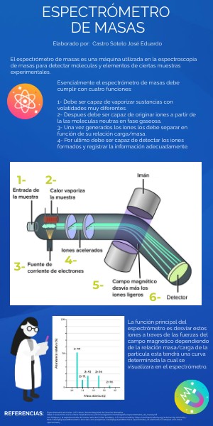 El espectrómetro de masas es una máquina utilizada en la espectroscopia de masas para detectar moleculas y elementos de ciertas muestras experimentales.