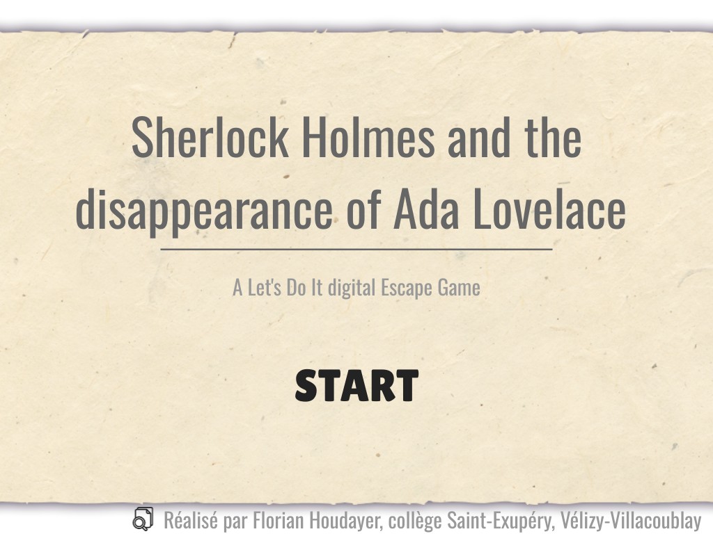 Réalisé dans le cadre de Let's do it, un atelier de mathématiques et histoire en anglais sur le thème de Sherlock Holmes, proposé à des élèves de 4eme au collège Saint-Exupéry à Vélizy-Villacoublay