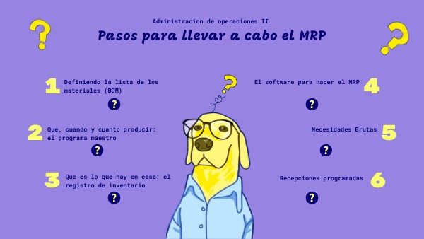 Debe tener un programa maestro de producción en el que tenga la cantidad de unidades a producir por un período de tiempo, generalmente semanas. Esto nos permitirá conocer qué componentes y materiales debemos comprar y fabricar para cumplir con la cantidad definida en el MPS, pero sin antes considerar el inventario.