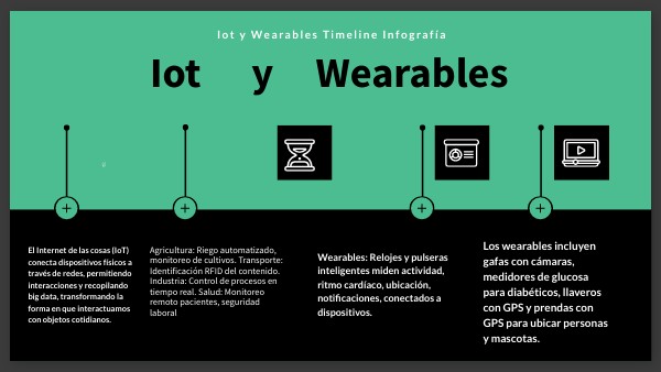 Wearables: Relojes y pulseras inteligentes miden actividad, ritmo cardíaco, ubicación, notificaciones, conectados a dispositivos.