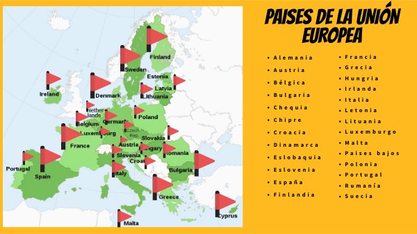 MAPA UE con banderas y países miembros