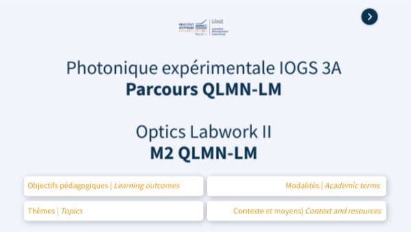 Photonique expérimentale IOGS 3A Parcours QLMN-LM Optics Labwork II M2 QLMN-LM
