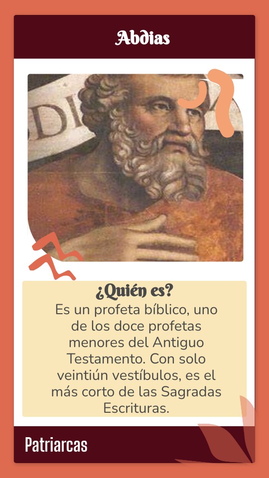 Es un profeta bíblico, uno de los doce profetas menores del Antiguo Testamento. Con solo veintiún vestíbulos, es el más corto de las Sagradas Escrituras.