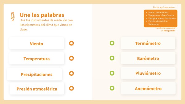 Une los instrumentos de medición con llos elementos del clima que vimos en clase.