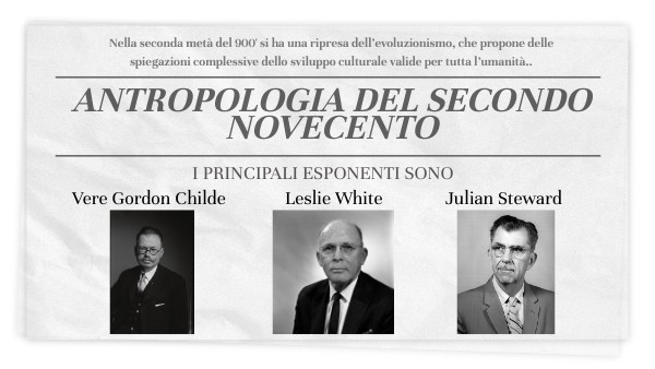 Nella seconda metà del 900' si ha una ripresa dell’evoluzionismo, che propone delle spiegazioni complessive dello sviluppo culturale valide per tutta l’umanità..