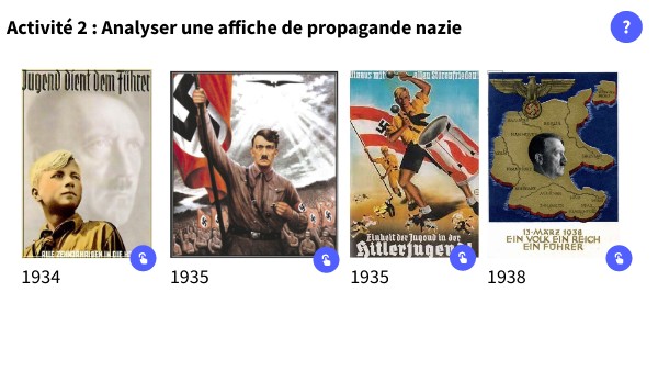 Expliquer l'objectif de l'affiche, son message : - Que sont les "Jeunesses hitleriennes " ? (regarde la vidéo) - Quel est le but de l'affiche ? Porter un regard critique : - Prouve que cette affiche a fonctionné ? (Vidéo) - Que souhaite faire Hitler à travers ces organisations de jeunesse ? (Texte + affiche)