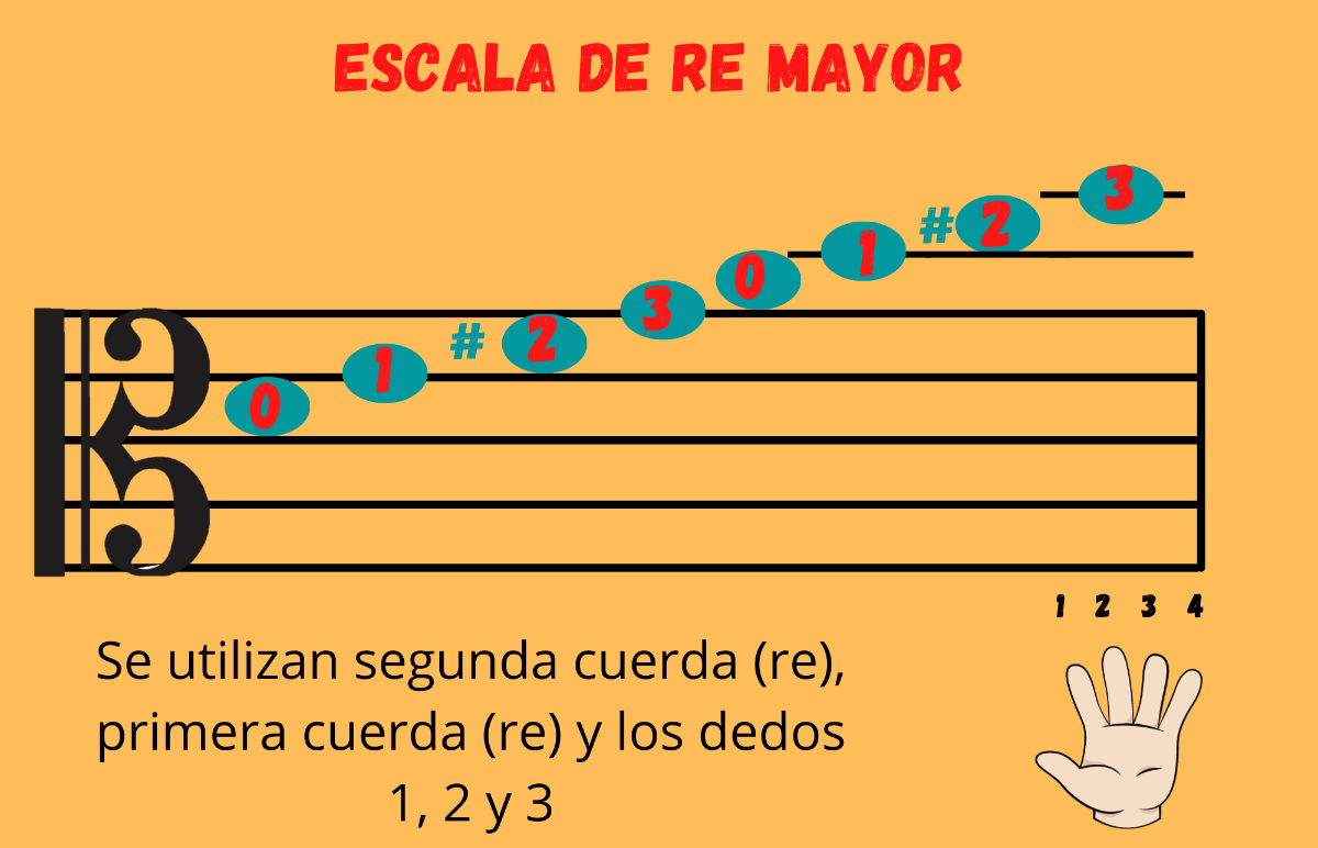 Escala de Re mayor, en clave de Do en tercera línea