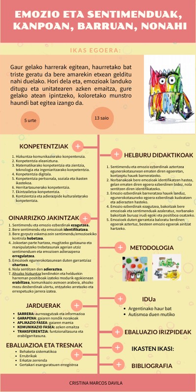 - Emozio ezberdinak barneratzea hauek landuz, egunerokotasuneko egoera ezberdinak kudeatzen eta adierazten hasteko.