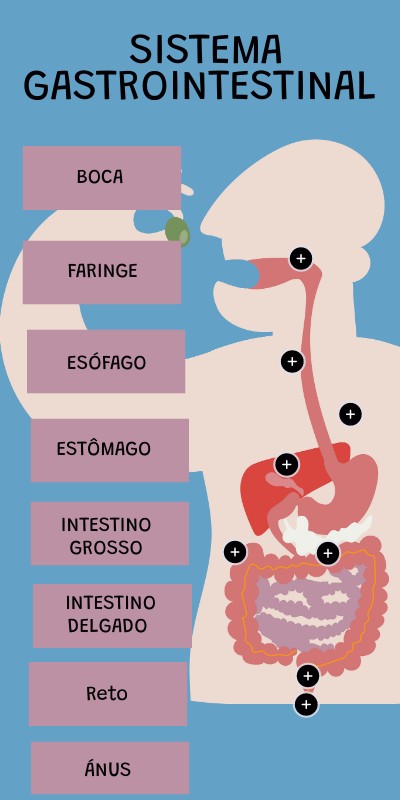 Responsável pela maior parte da digestão e absorção dos alimentos e recebe as secreções do pâncreas e do fígado, que auxiliam esse processo