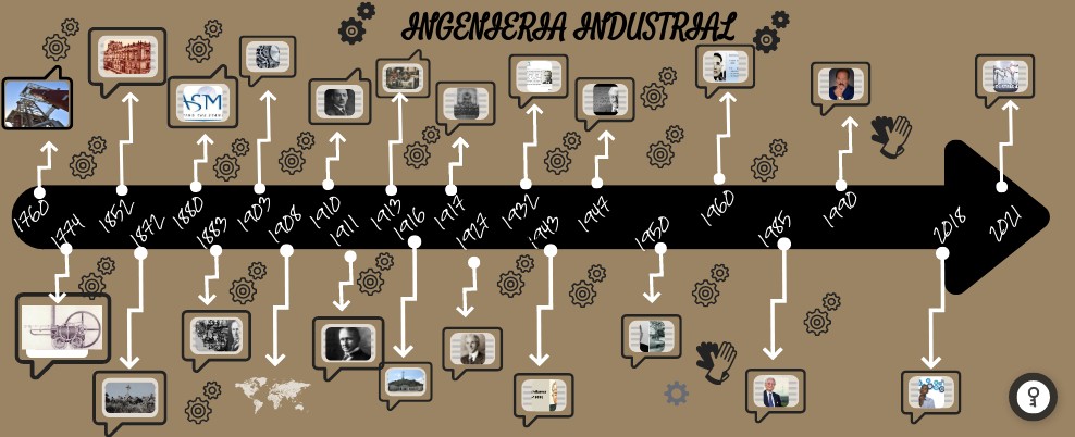 - Predictiva. (2023, 2 mayo). Línea del tiempo de la ingeniería industrial. Predictiva21. https://predictiva21.com/linea-tiempo-ingenieria-industrial/#:~:text=1760%3A%20Se%20da%20la%20revoluci%C3%B3n,problemas%20de%20direcci%C3%B3n%20de%20taller.