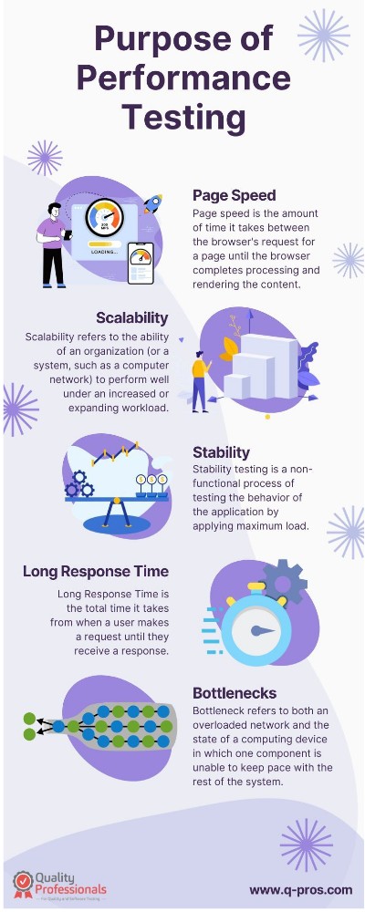 The most prevalent difficulties that performance testing reveals are speed, response times, load times, and scalability. In this infographic, we will help you to understand the purpose of performance testing.