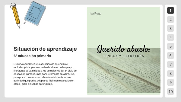 Querido abuelo: es una situación de aprendizaje multidisciplinar propuesta desde el área de lengua y literatura que va dirigida a los estudiantes del 3er ciclo de educación primaria, más concretamente para 6ºcurso, pero por su cercanía con el centro de interés es una actividad que podría adaptarse fácilmente a cualquier etapa , ciclo o nivel de aprendizaje.