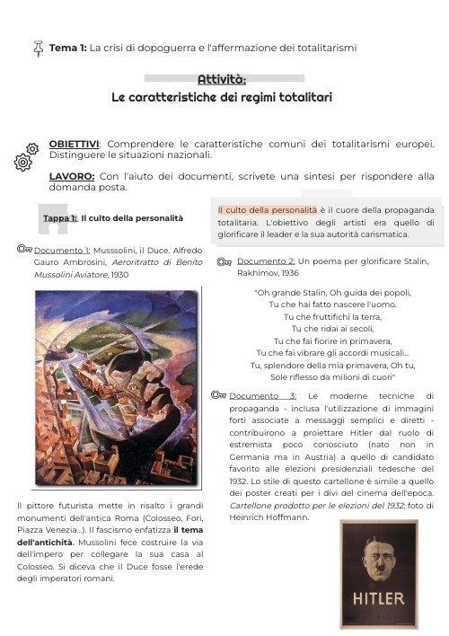 Tema 1: La crisi di dopoguerra e l'affermazione dei totalitarismi