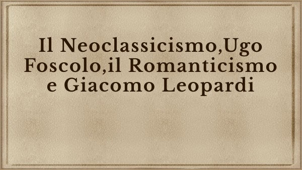 Il Neoclassicismo,Ugo Foscolo,il Romanticismo e Giacomo Leopardi