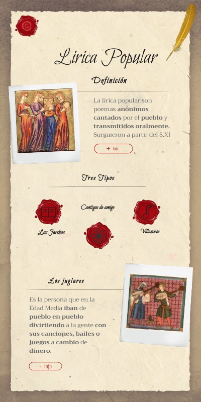 La lírica popular son poemas anónimos cantados por el pueblo y transmitidos oralmente. Surguieron a partir del S.XI