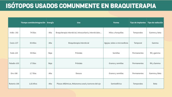 ISÓTOPOS USADOS COMUNMENTE EN BRAQUITERAPIA