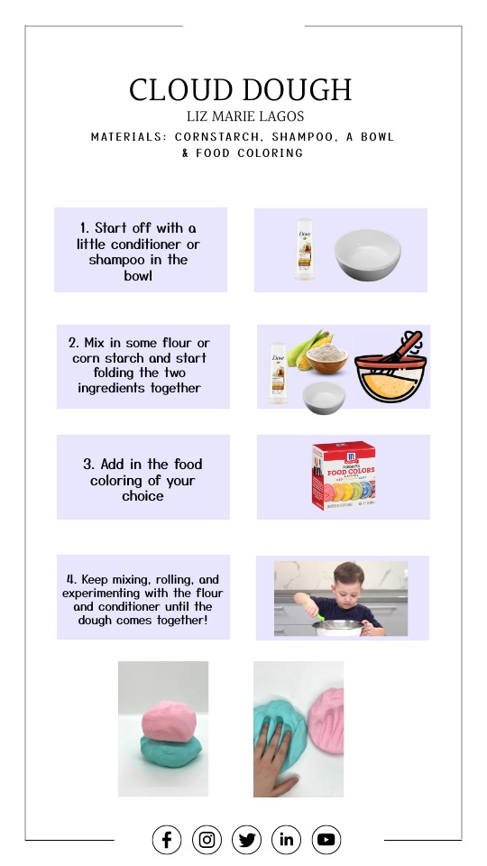 Materials: Cornstarch, shampoo, a bowl & food coloring